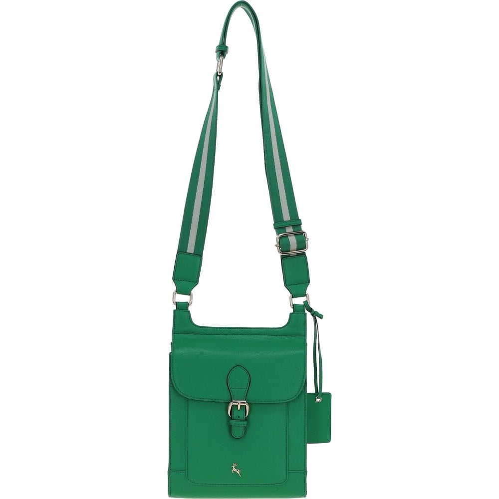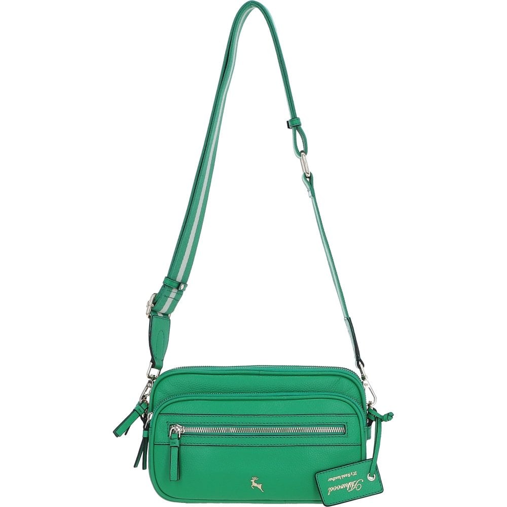 Ashwood Leather Compact Twin Zip Leather Crossbody Bag Green