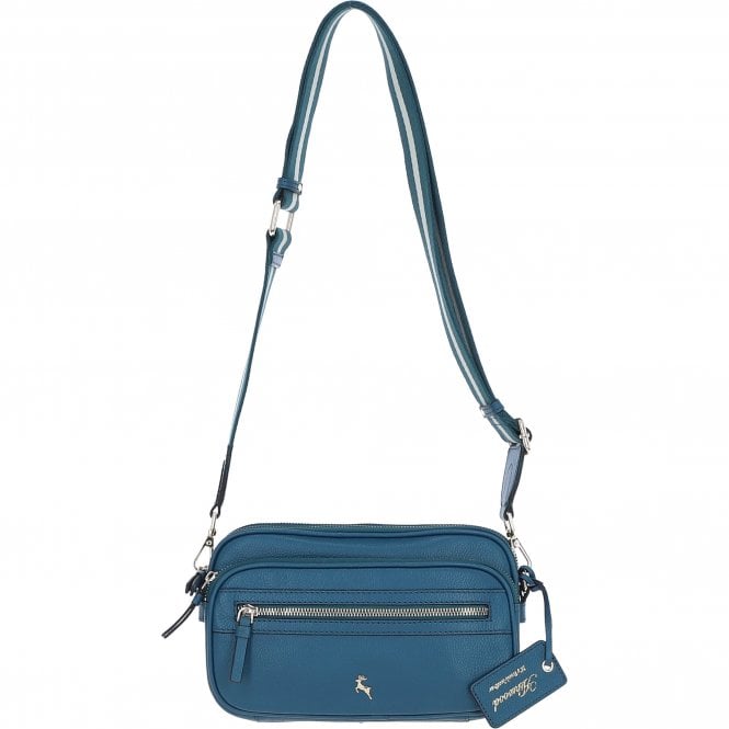 Ashwood Leather Compact Twin Zip Leather Crossbody Bag Blue